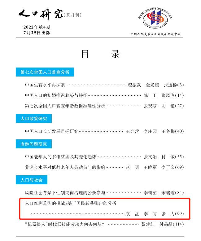 我院青年教师袁益博士及其合作者在《人口研究》2022年第4期发表文章《人口红利重构的挑战:基于国民转移账户的分析》。