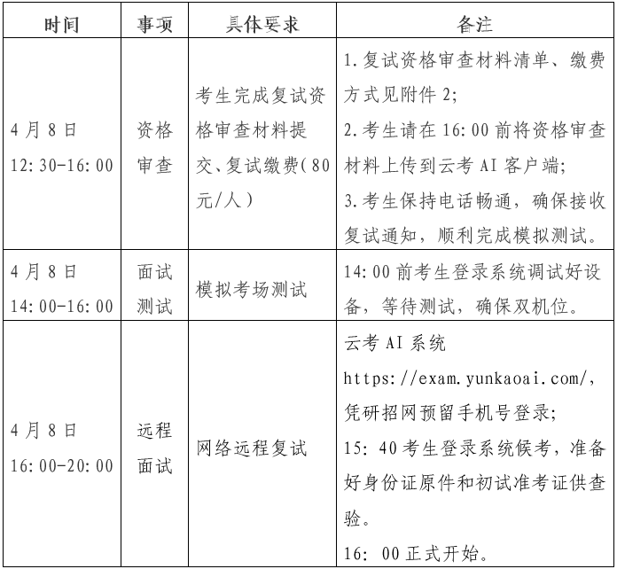 2.请考生提前下载好云考AI的电脑PC端和手机移动端,以及谷歌浏览器,考生可根据所用设备下载对应软件,操作方式详见附件1《网上复试考生使用手册》。